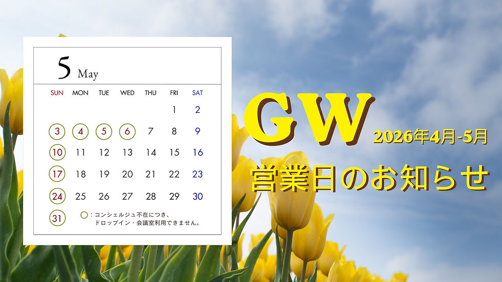 下記日程は一部のフレックス法人会員様、ドロップイン、貸し会議室、内覧、各種お問い合わせをご利用いただけませんので、ご了承ください。
